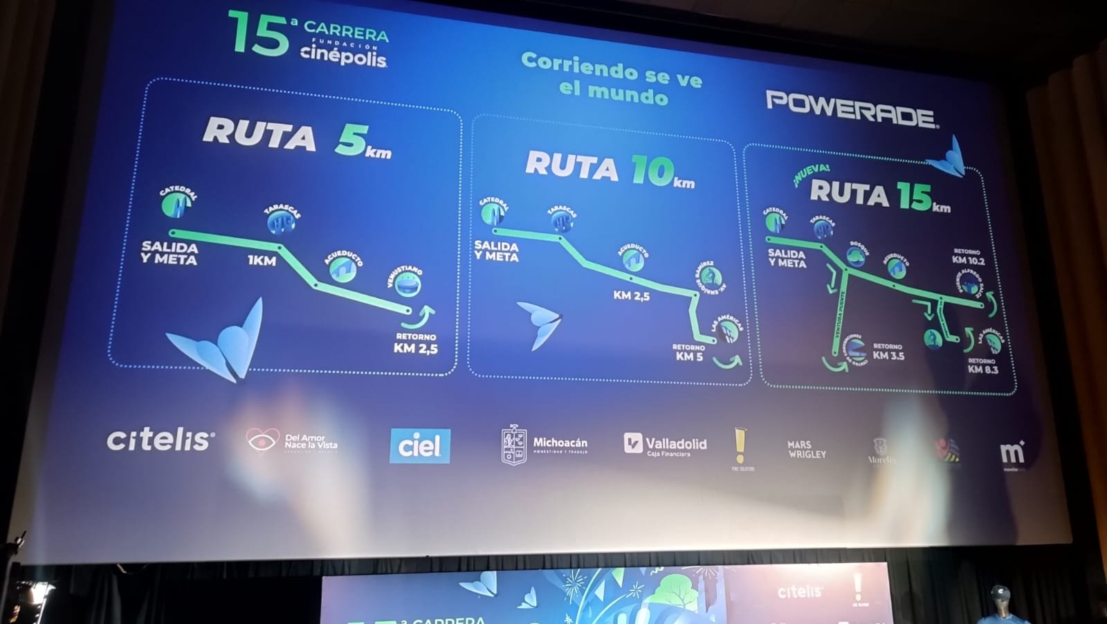 Durante conferencia de prensa, el director general de Operaciones Cinépolis, Miguel Mier, reveló que este 2025 se incluirá por primera vez un recorrido de 15 kilómetros, además de las acostumbradas rutas de 5 y 10; el punto de salida será a las 8:00 am de la Catedral de Morelia, y aunque únicamente habrá disponibles 4 mil 500 números de participación, se espera que asistan hasta 6 mil corredores en total.