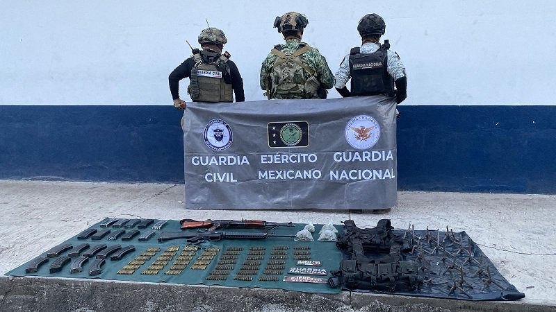 Ambos fusiles de los calibres .223 y 7.62X39 milímetros, junto a 19 cargadores, los citados cartuchos útiles, dos chalecos tácticos y 19 ponchallantas fueron encontradas en el lugar; además de cuatro bolsas que contenían el enervante conocido como mariguana.
