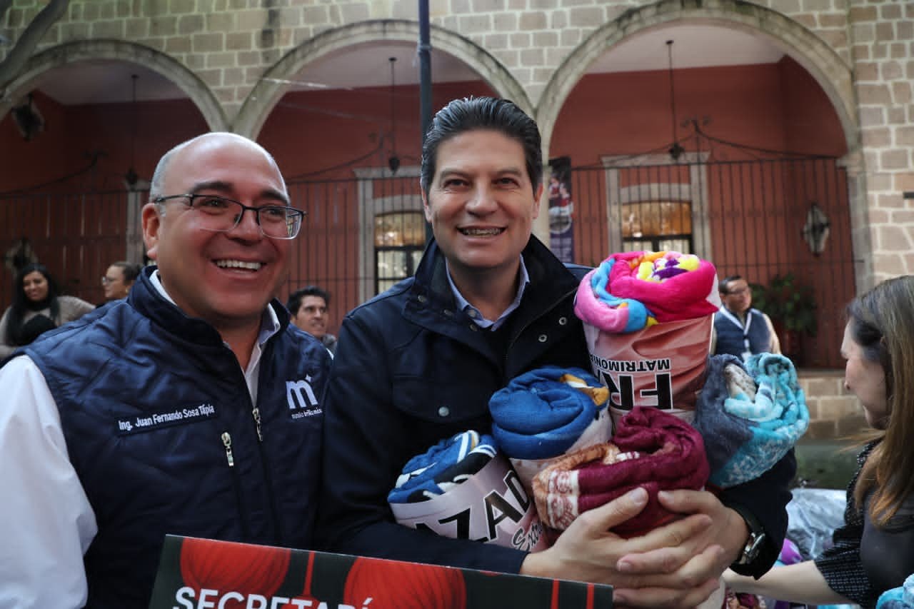 Morelia, Mich.- En un ambiente de unión y compromiso social, el Presidente Municipal Alfonso Martínez Alcázar, y la Presidenta del DIF Morelia, Paola Delgadillo Hernández encabezaron el arranque oficial de la colecta “Cobijemos Morelia 2025”, donde las dependencias municipales realizaron la primera entrega de cobijas, como muestra de solidaridad y empatía con las y los morelianos.