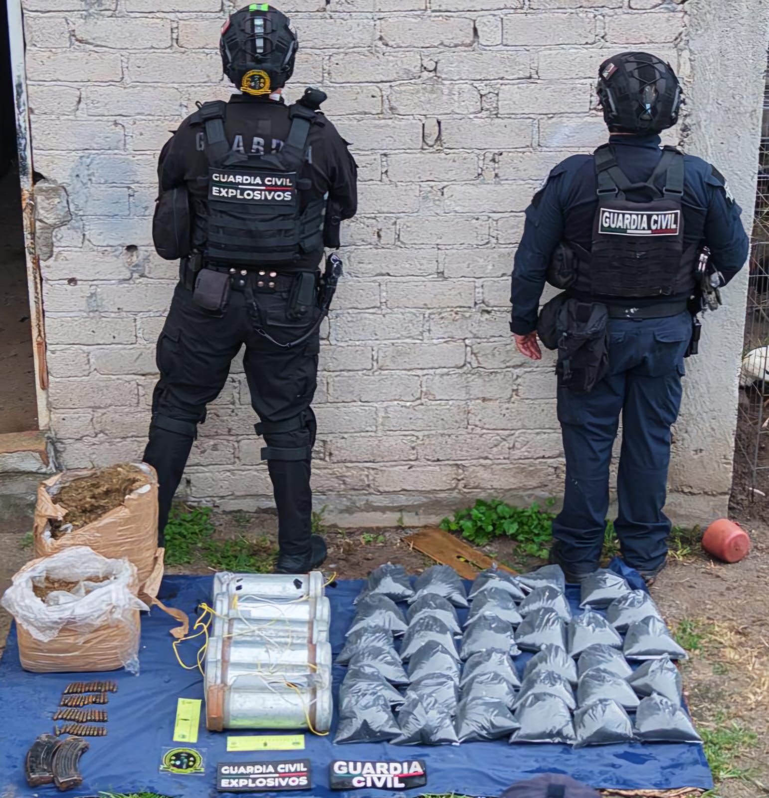 Zinapécuaro, Mich.- En recorridos de inspección y prevención del delito, personal de la Secretaría de Seguridad Pública (SSP), en coordinación con las policías municipales de Maravatío, Senguio, Tlalpujahua e Irimbo, aseguró cuatro cilindros explosivos, pólvora, siete kilogramos de marihuana, dos cargadores y 50 cartuchos útiles.