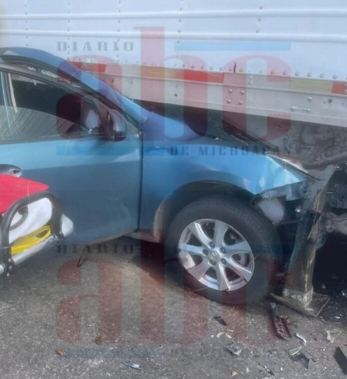 TINGAMBATO, MICH.- Un hombre que viajaba en un vehículo compacto falleció prensado al estrellarse contra la caja de un tráiler estacionado sobre la carretera «libre» Uruapan-Pátzcuaro, a la altura de esta población de Tingambato.