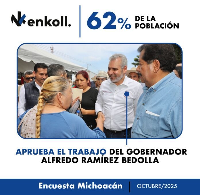 Morelia, Mich.- Según datos de la casa encuestadora Enkoll, el 62 % de la población valida la gestión del mandatario a cuatro años de iniciar su periodo.