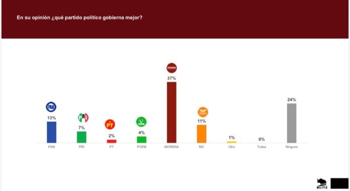 Por el contrario, al 37 % le gustaría que Morena siguiera gobernando en Michoacán, y no sólo eso: el 31.4 % tiene la intención de votar por el partido guinda en las elecciones de ese año.