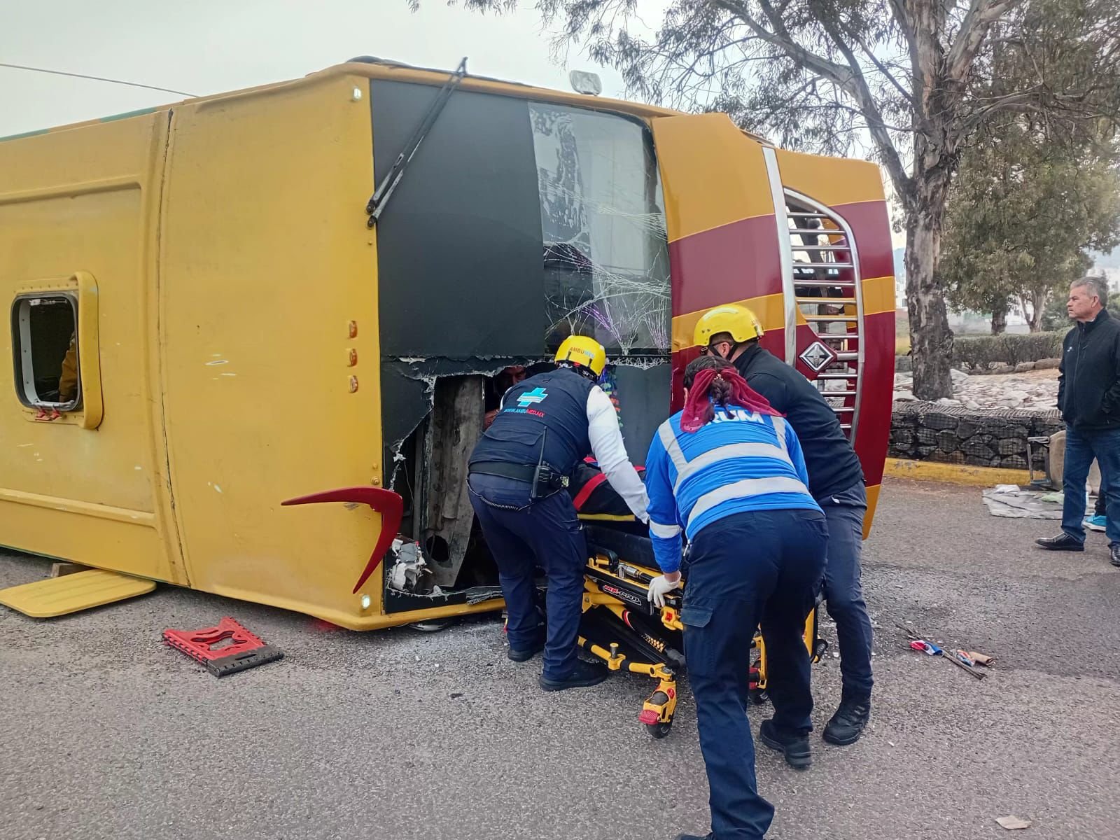 Tras el reporte del incidente, paramédicos del CRUM en coordinación con otros cuerpos de rescate se trasladaron al sitio para realizar la valoración correspondiente y brindar los primeros auxilios. De acuerdo con el reporte preliminar, el accidente dejó un saldo de 10 personas lesionadas.