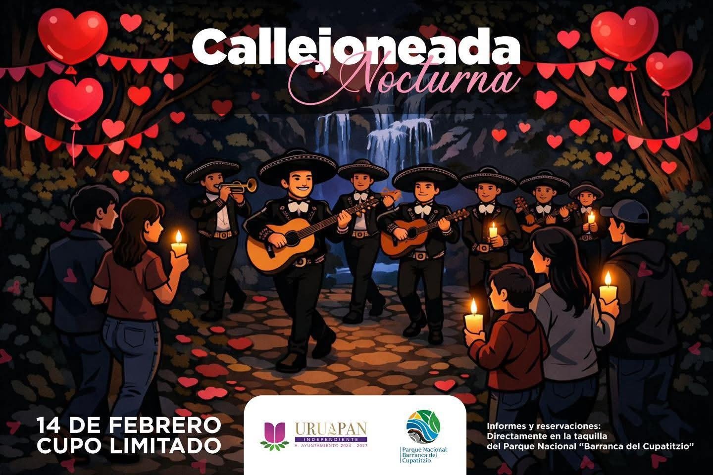 URUAPAN, MICH.- Para festejar el 14 de Febrero, Día del Amor y la Amistad, Uruapan ofrece una nueva y excelente opción: una callejoneada nocturna por los senderos del Parque Nacional Barranca del Cupatitzio.