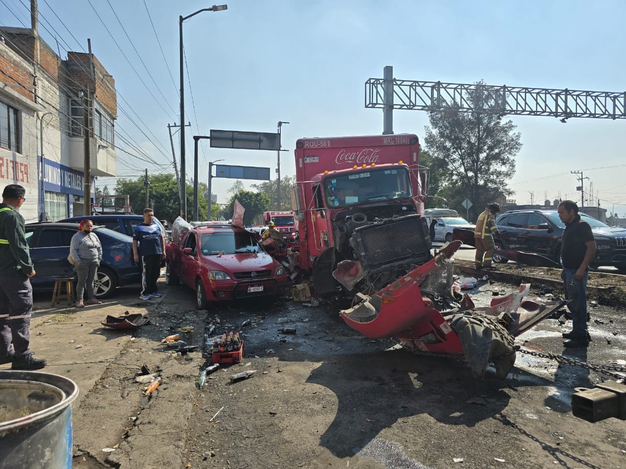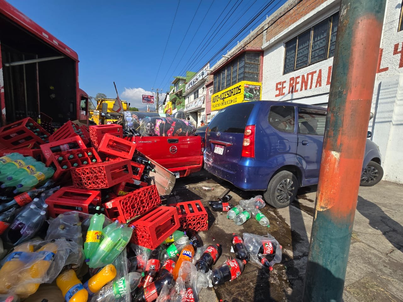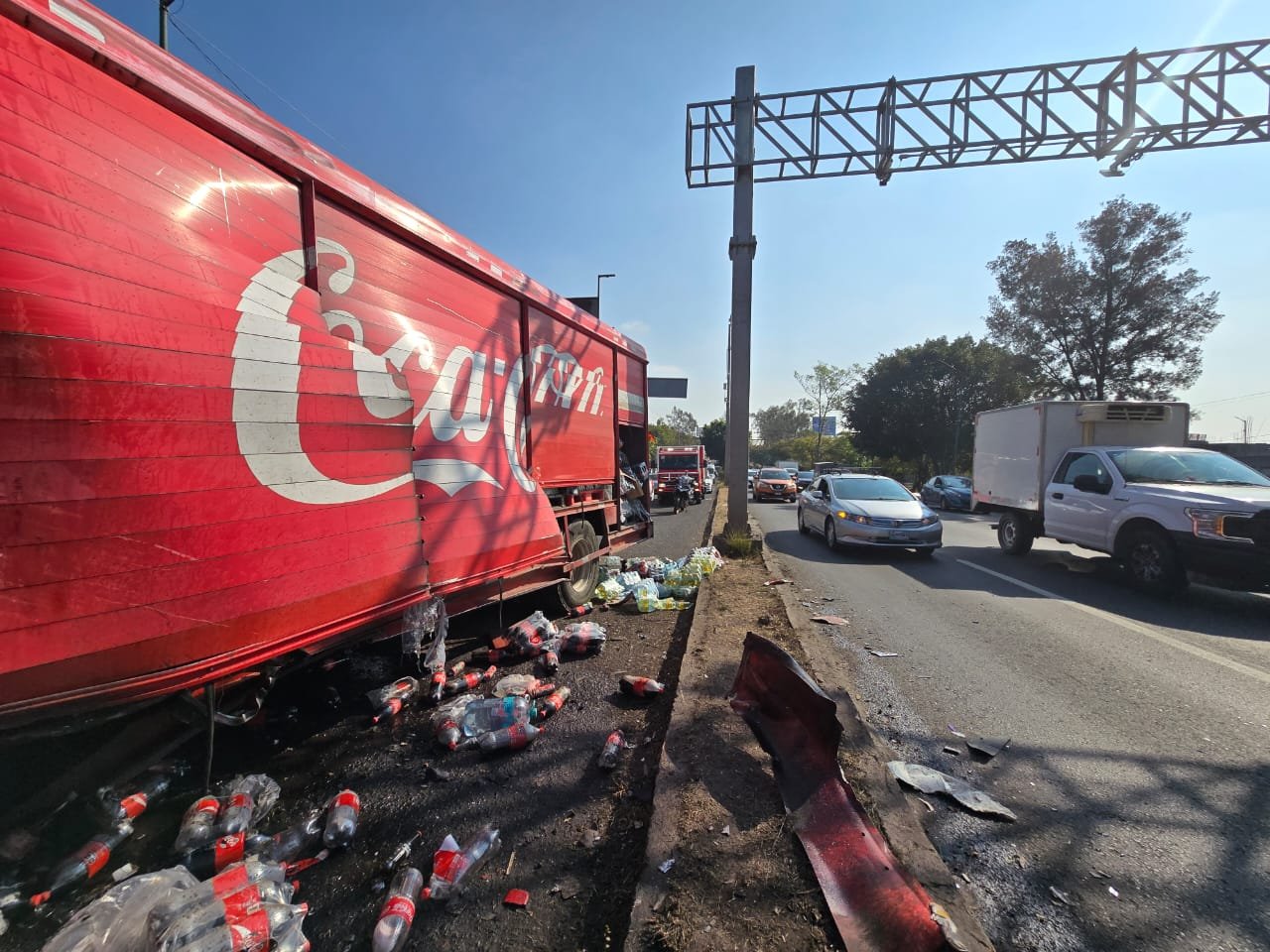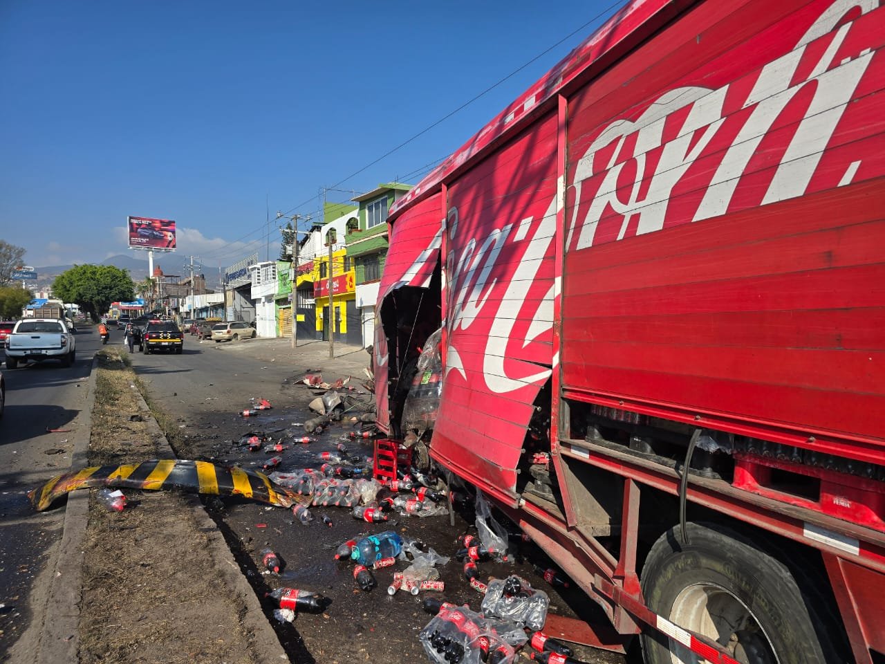 Morelia, Mich.- Un camión de la empresa Coca-Cola chocó contra un poste metálico en el Periférico Paseo de la República, al norponiente de Morelia. Debido al impacto, parte de su cargamento se salió tras el movimiento brusco, cayó sobre una camioneta y, a su vez, la empujó contra otro vehículo que se encontraba estacionado a la orilla del camino, informaron autoridades policiales.