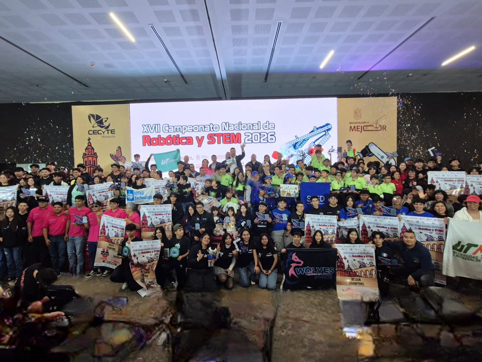 Morelia, Mich.- El Colegio de Estudios Científicos y Tecnológicos del Estado de Michoacán (Cecytem) aseguró tres lugares para el mundial de robótica a celebrarse en mayo en San Luis, Missouri, Estados Unidos. Así lo informó el director general del subsistema, Juan Carlos Velasco Procell, tras los resultados obtenidos en el 17 Campeonato Nacional de Robótica y Habilidades STEM, con sede en esta ciudad capital.