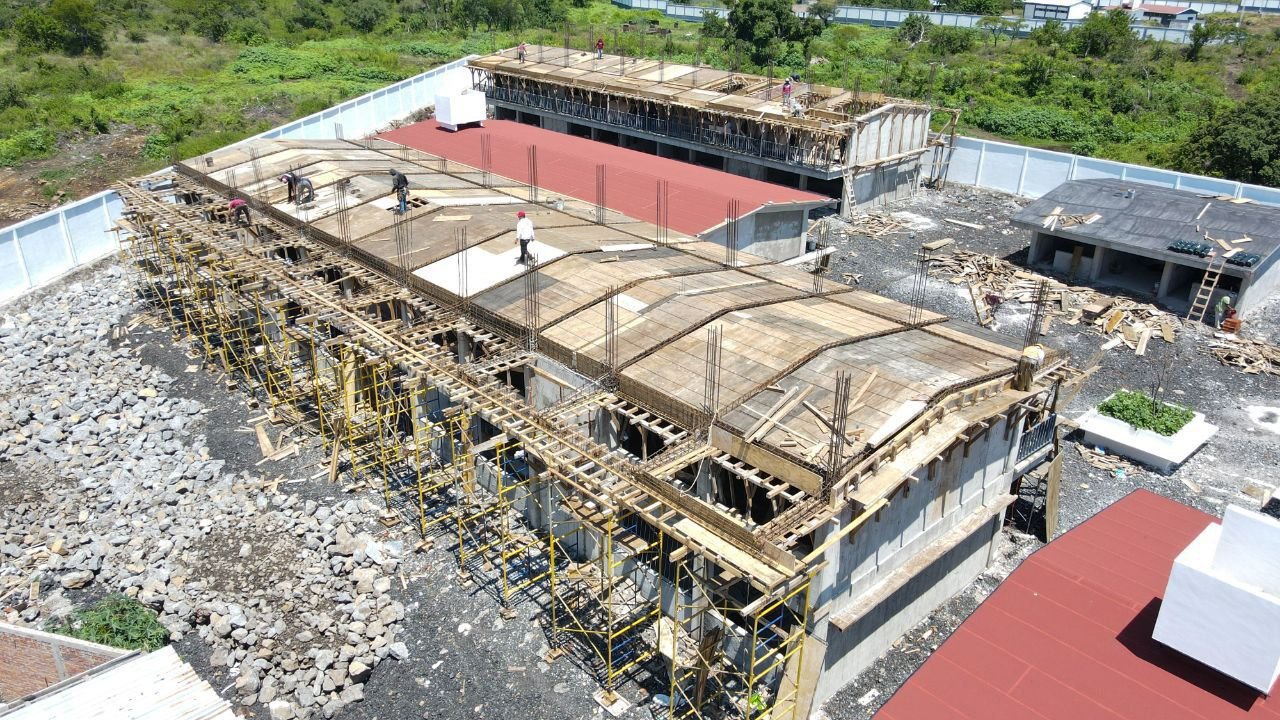 Por medio de la Dirección de Infraestructura Educativa de la SCOP, se avanza en la construcción de dos edificios de ocho aulas cada uno, uno de un nivel con dos aulas y laboratorio, así como un módulo de baños para niños, niñas y personas con discapacidad, área de comedor con techumbre y una cooperativa.