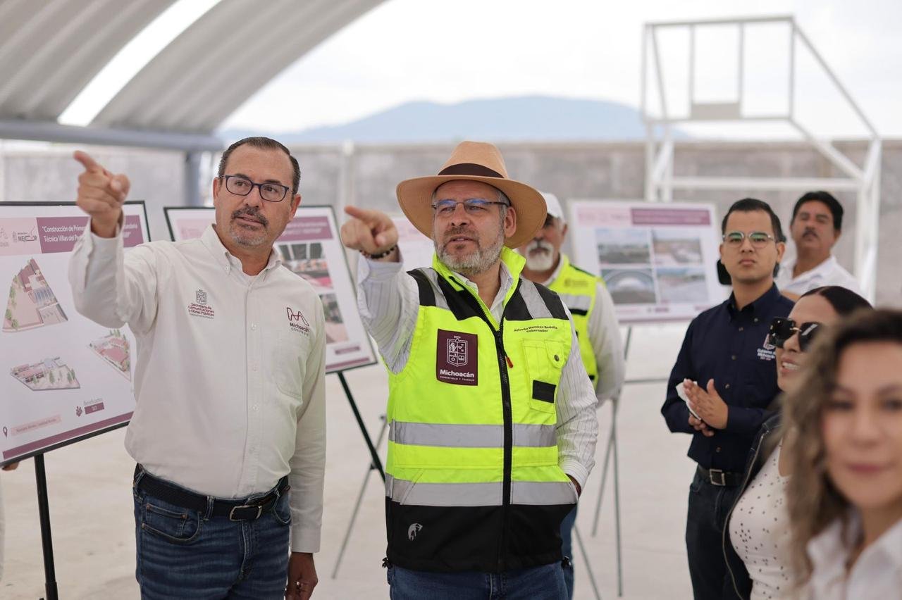 Morelia, Michoacán.- Al supervisar el avance de los trabajos de construcción de la primera etapa de la Secundaria Técnica 168, el gobernador Alfredo Ramírez Bedolla señaló que más de 800 estudiantes de Villas del Pedregal tendrán educación digna.