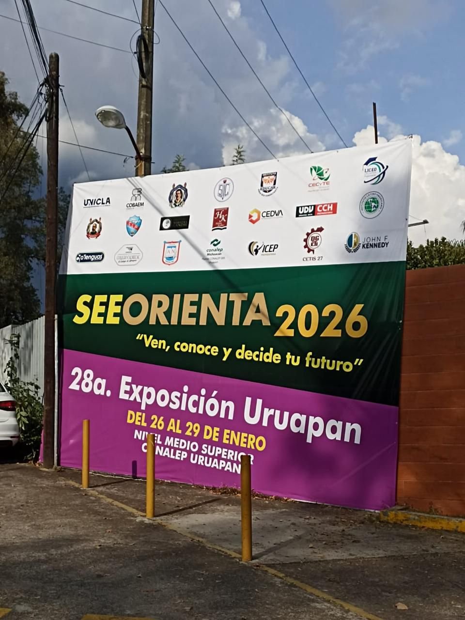 URUAPAN, MICH.- El Colegio Nacional de Educación Profesional Técnica (Conalep) Uruapan, albergará la 28va. edición del SEE Orienta 2026, se realizará del 26 al 29 de enero del presente año.