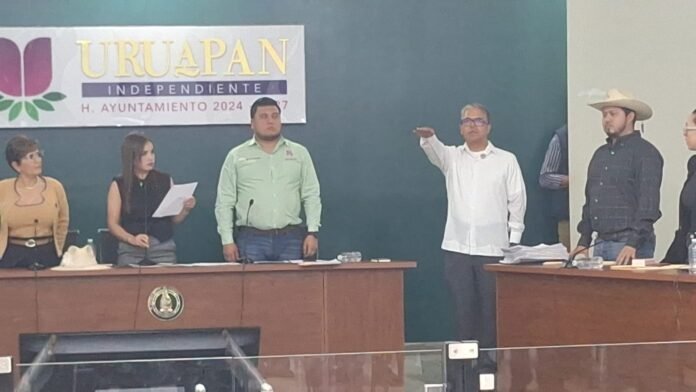URUAPAN, MICH.- Omar Guadarrama Brito fue designado Secretario de Seguridad Pública, Tránsito y Vialidad Municipal. Su designación se dio por votación directa de los integrantes del ayuntamiento, de entre una terna integrada además por Martín Galván y Erika Alejandra Arévalo Verduzco.