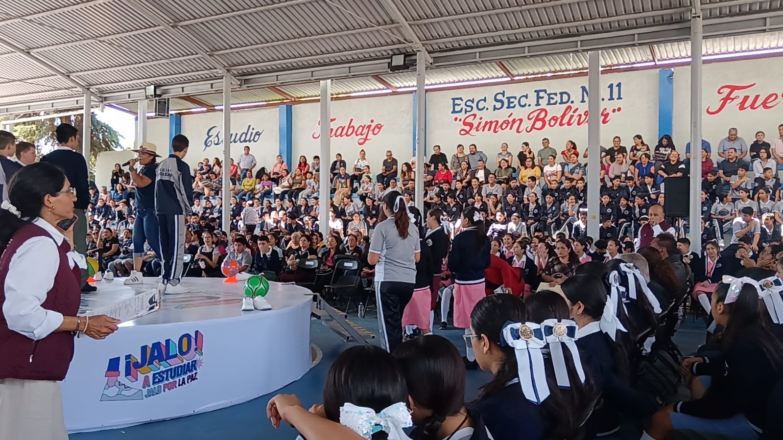Morelia, Mich.- Este día tocó el turno a las y los estudiantes de la escuela secundaria federal no. 11 Simón Bolívar, donde Gabriela Molina Aguilar, titular de la Secretaría de Educación en el Estado (SEE), encabezó dinámicas para la entrega de libros, balones y mochilas, como parte de la estrategia para la permanencia en las aulas.