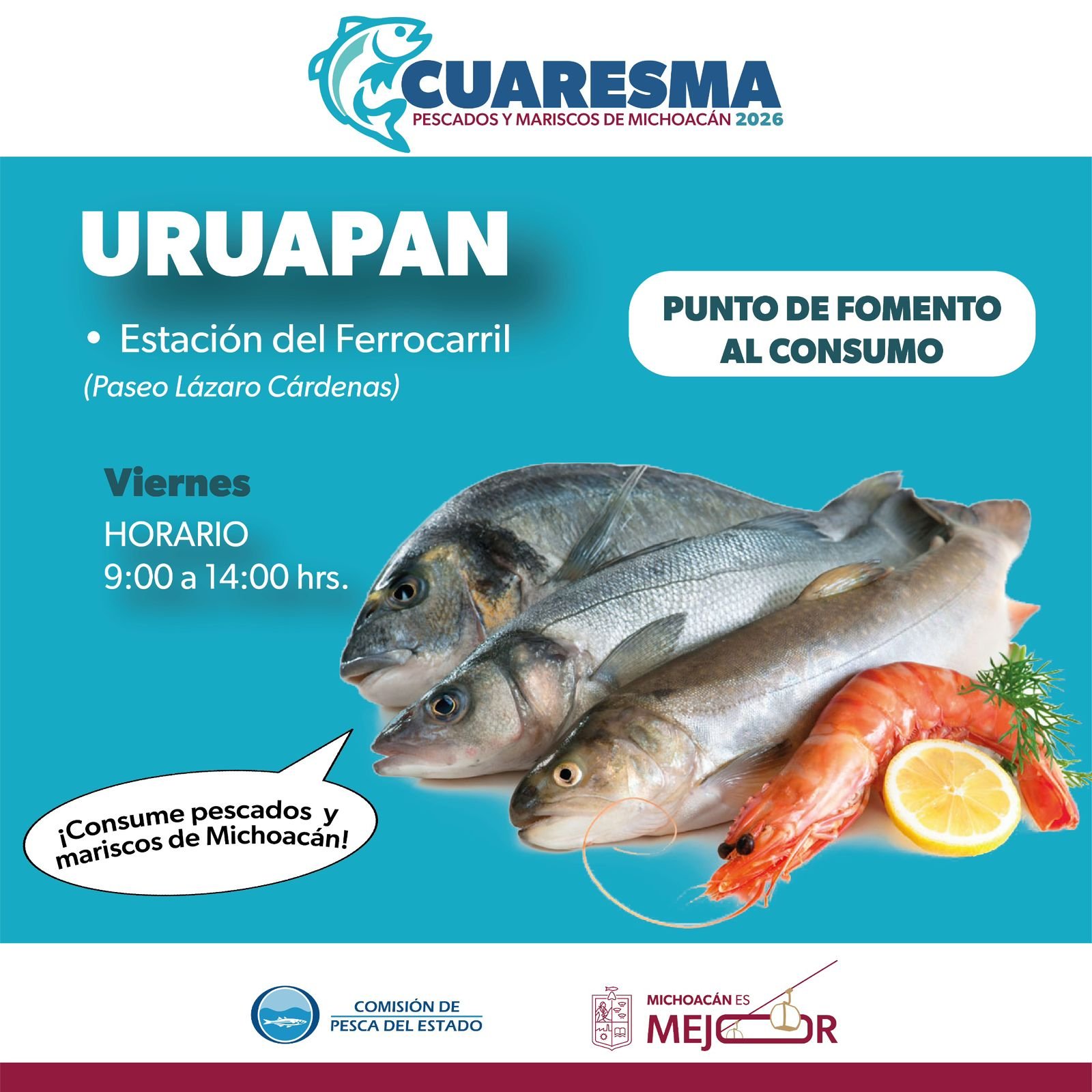 El objetivo de estos puntos es promover una alimentación saludable, ya que el pescado es un alimento de alto valor nutricional que aporta proteínas de calidad, vitaminas y minerales esenciales para una dieta equilibrada. En estos espacios se ofrecerán especies de granja como tilapia, trucha, bagre y rana toro, así como productos del mar como huachinango, camarón y langosta, todos con estándares de calidad del sector pesquero y acuícola de Michoacán.
