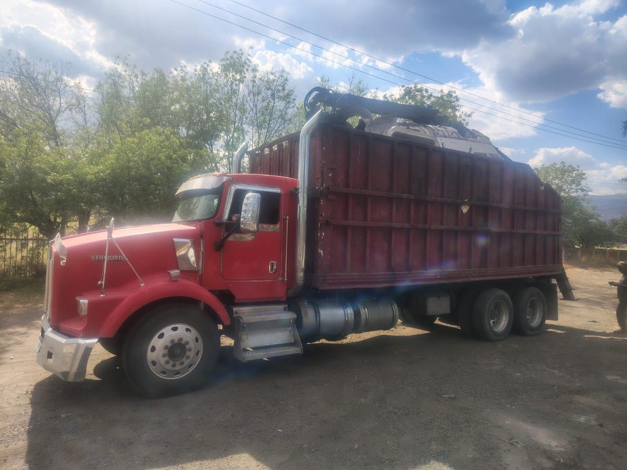 En cuanto al camión chatarrero, este es de la marca Kenworth, tipo torton, color rojo, mismo que fue localizado en la calle Benito Juárez, también en el Barrio de La Cruz. Ambos quedaron a disposición de la instancia correspondiente.