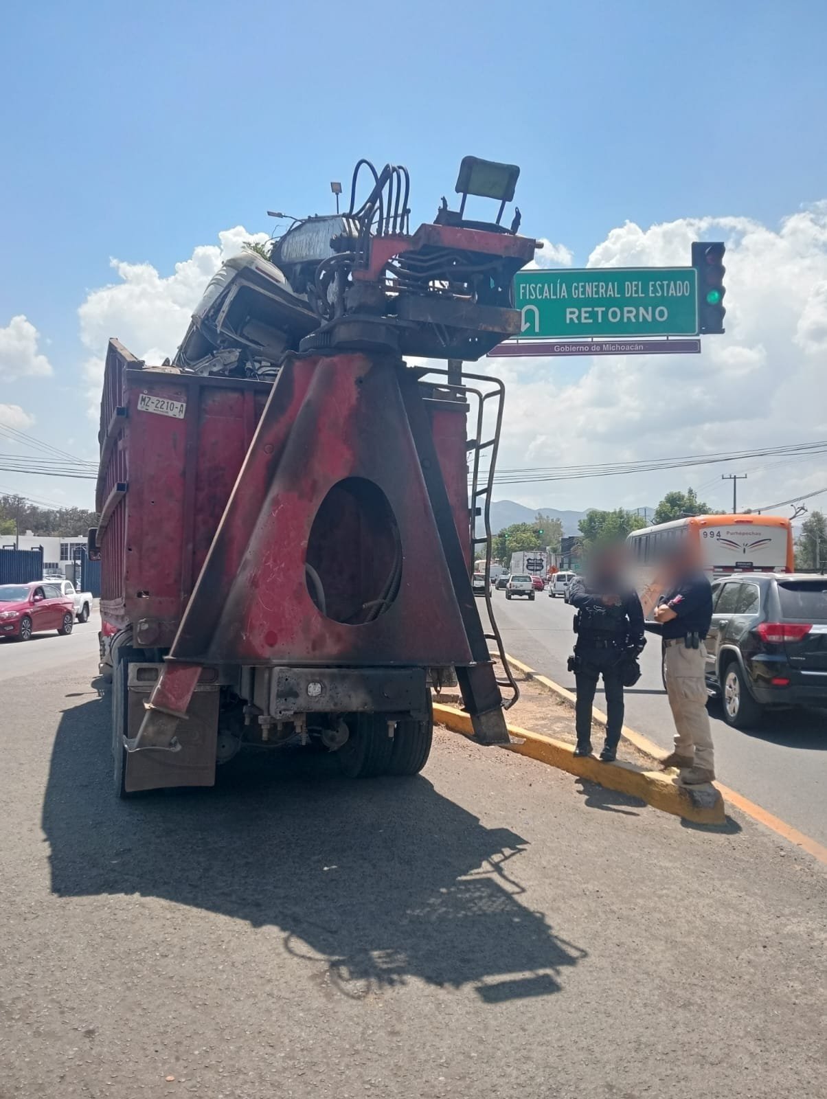 Cabe recordar que, la tarde del pasado martes 24 de marzo, el segundo vehículo en mención era escoltado por personal de la FGE, cuando en determinado momento se atoró en unos cables de fibra óptica y, al jalarlos, derribó dos postes de la Comisión Federal de Electricidad (CFE) en el Libramiento Poniente de Morelia, a la altura de la colonia Manantiales.