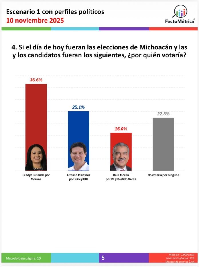Factométrica levantó este estudio de opinión el 10 de noviembre, en medio de una coyuntura política que anticipaba un escenario adverso para Morena. Sin embargo, se ratificó su poderío político en Michoacán.