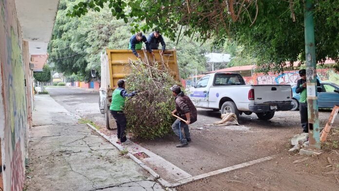 Personal de la Secretaría de Servicios Públicos Municipales, cuyo titular es el secretario Netzahualcóyotl Vázquez Vargas, desde temprana hora comenzaron la poda de árboles cuyas hojas y ramas crecieron considerablemente durante la temporada de lluvias.