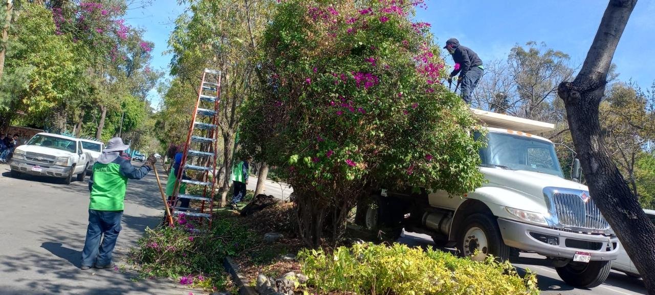 De igual forma, se continua con el mantenimiento integral en la Calzada Juárez, que incluye poda sanitaria de árboles, poda general de árboles, poda específica de camelinas, limpieza general con deshierbe y riego de las áreas verdes para garantizar su salud y buen estado.