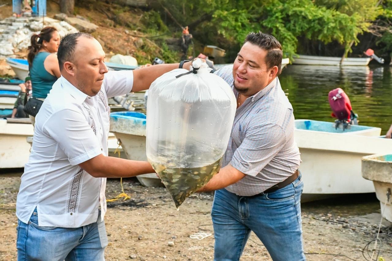 El alcalde reiteró el compromiso de su administración con el fortalecimiento del sector pesquero, destacando que este proyecto se ha mantenido de manera ininterrumpida durante los últimos cinco años, depositando ya 500 mil crías, logrando resultados favorables para las familias que dependen de esta actividad.