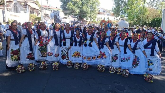 Uruapan, Mich.- Las calles del centro de esta ciudad se inundaron de belleza, tradición y alegría, al celebrarse este domingo el tradicional ritual de Las Aguadoras, admirado en vivo por miles de personas.