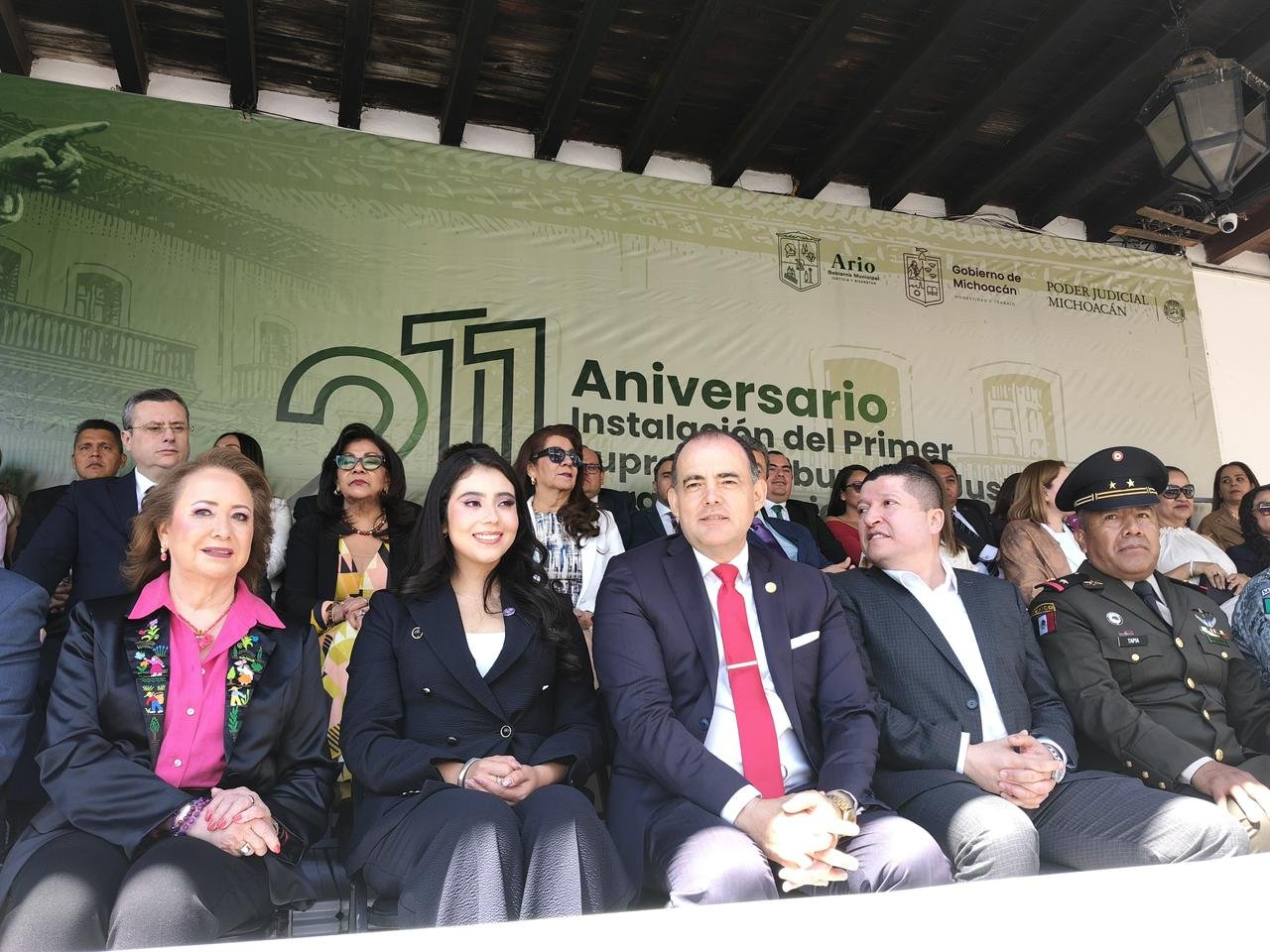 En el evento participaron la ministra Yasmín Esquivel Mossa, en representación de la Suprema Corte de Justicia de la Nación; el secretario de Gobierno del Estado, Raúl Zepeda Villaseñor; el magistrado Hugo Gama Coria, presidente del Poder Judicial de Michoacán; la presidenta municipal de Ario, Karla Yohana Mendoza Bermúdez; el fiscal general del Estado, Carlos Torres Piña; así como el diputado Vicente Gómez Núñez, quienes coincidieron en destacar la importancia histórica de este acontecimiento para la consolidación del Estado de derecho en México.