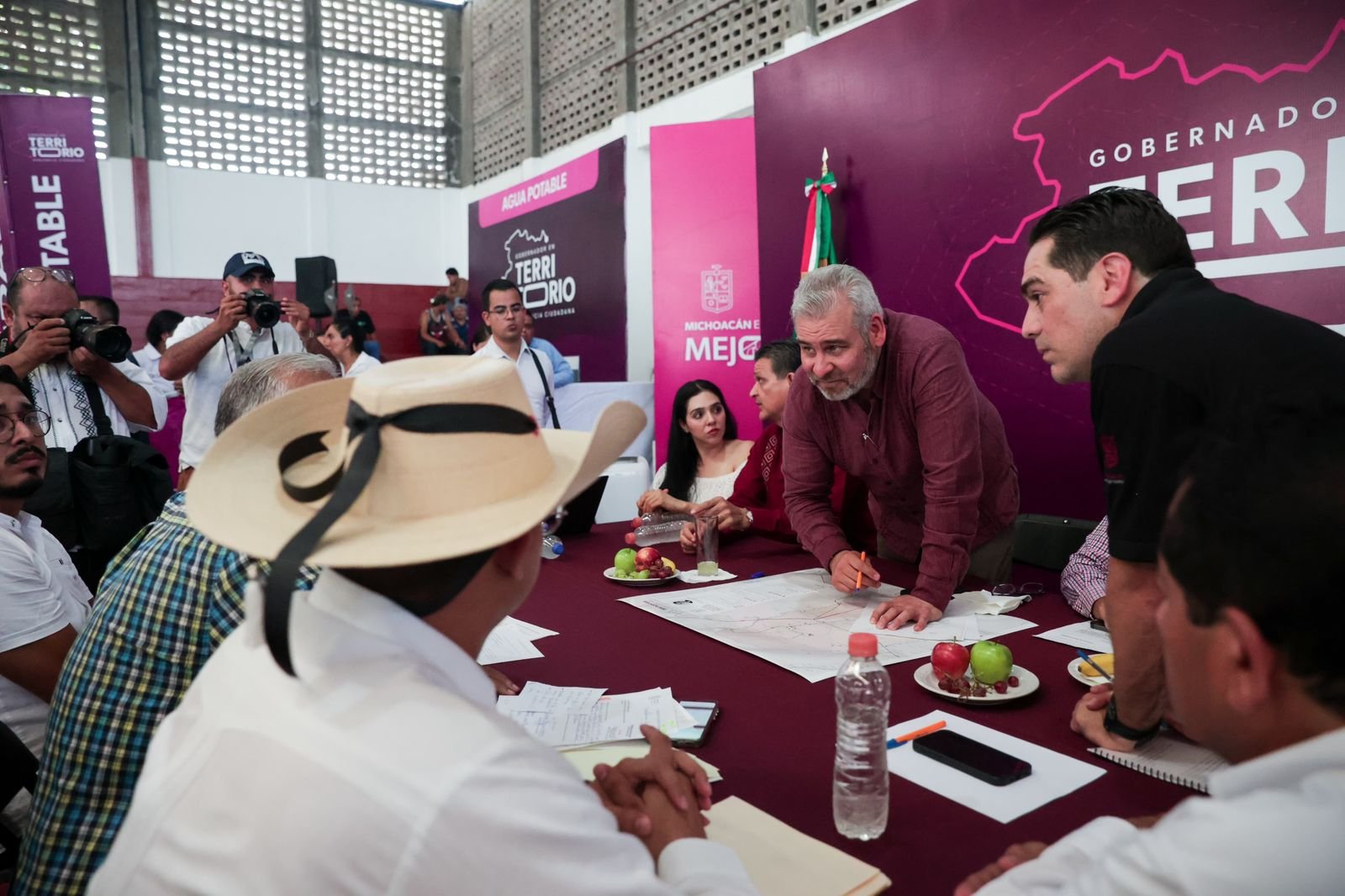 Acompañado de los integrantes de su gabinete y de autoridades federales; del presidente municipal de Múgica, José Alfredo Rentería Patiño; y del diputado local, J. Reyes Galindo Pedraza, Ramírez Bedolla respondió las solicitudes de la ciudadanía y las turnó a las áreas correspondientes para su valoración.