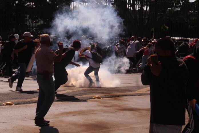 Morelia, Mich.- Lo que pretendía ser una manifestación pacífica en exigencia de justicia por el asesinato del presidente de Uruapan Carlos Manzo, mismo que tuvo lugar el pasado primero de noviembre, terminó en una batalla campal entre una parte de los protestantes y elementos de la Guardia Civil.