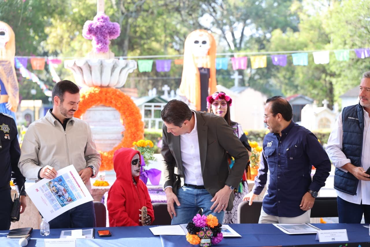 Morelia, Mich.- El Presidente Municipal, Alfonso Martínez Alcázar, encabezó la presentación del operativo integral del Ayuntamiento de Morelia para recibir a las familias que visitarán los panteones de la ciudad y las tenencias durante las celebraciones del Día de Muertos, una de las tradiciones más importantes y concurridas del municipio. El año pasado, estas festividades registraron una afluencia de más de 150 mil visitantes entre el 31 de octubre y el 2 de noviembre.