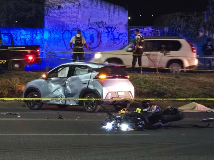 Morelia, Mich.- Un motociclista falleció tras chocar contra el costado izquierdo de un automóvil en los carriles centrales de la avenida Madero Poniente de la ciudad de Morelia, informaron autoridades policiales y de rescate.