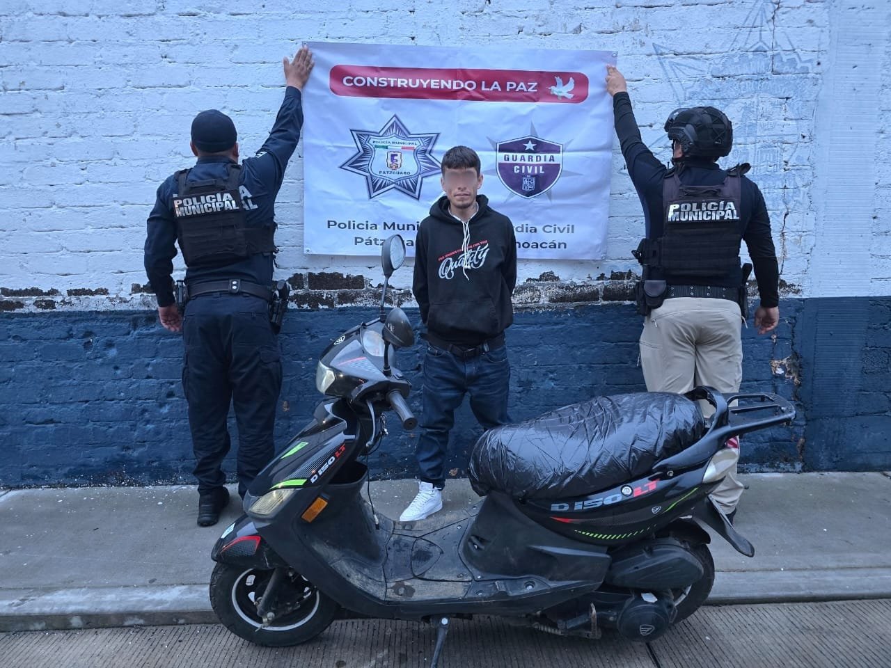 El sujeto se identificó como Rigoberto, de 30 años de edad, vecino del fraccionamiento La Concepción, en Pátzcuaro, quien estaba en una motoneta Italika, sin placas.