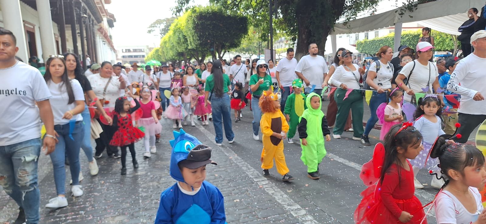 Durante poco más de una hora, por esas calles transitaron pequeños vestidos como El Rey León, conejos, abejas, osos, medusas, etc, acompañados de sus padres, profesores, música y una banda de guerra.