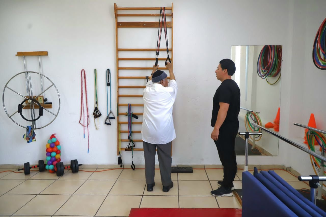 En este espacio, las y los usuarios participan en rutinas de activación física y ejercicios terapéuticos diseñados por un equipo multidisciplinario, enfocados en mejorar capacidades clave como la fuerza muscular, el equilibrio y la coordinación.