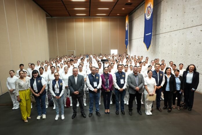 Ustedes van a cambiar la vida de un paciente, van a cambiar la vida de una familia y todo lo que hagan va a marcar también su vida profesional, añadió, si hay alguna situación que ocurra en el servicio social, a través de la Coordinación de Vinculación y Servicio Social coméntenla para poder intervenir a tiempo y generarles una buena dinámica en su servicio social y que no sea un motivo para que ustedes tengan que desertar, “nosotros vamos a estar acompañándolos no solamente en su toma de plaza también desde el día que inicien su servicio social hasta el día que culminen”.
