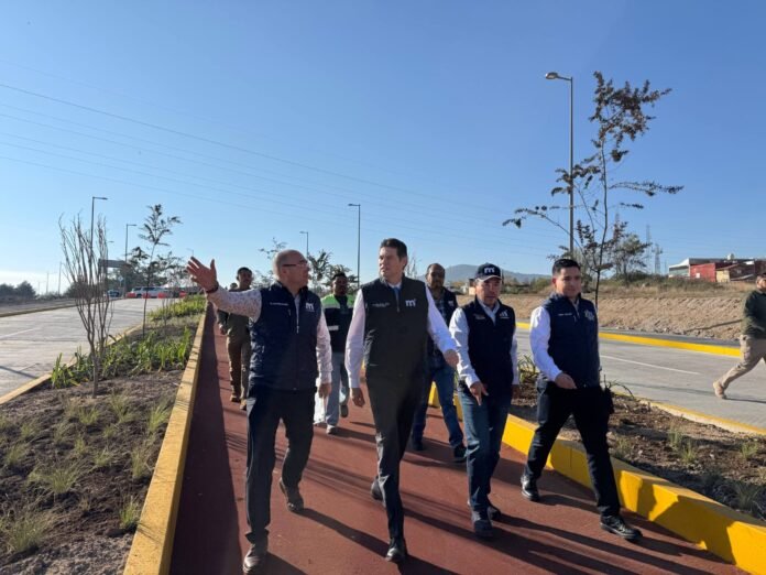 Acompañado por los titulares de las Secretarías de Obras Públicas, Servicios Públicos y Seguridad y Protección Ciudadana, Juan Fernando Sosa, Nezahualcóyotl Vázquez y Pablo Alarcón, respectivamente, el alcalde informó que la vialidad será inaugurada este sábado.