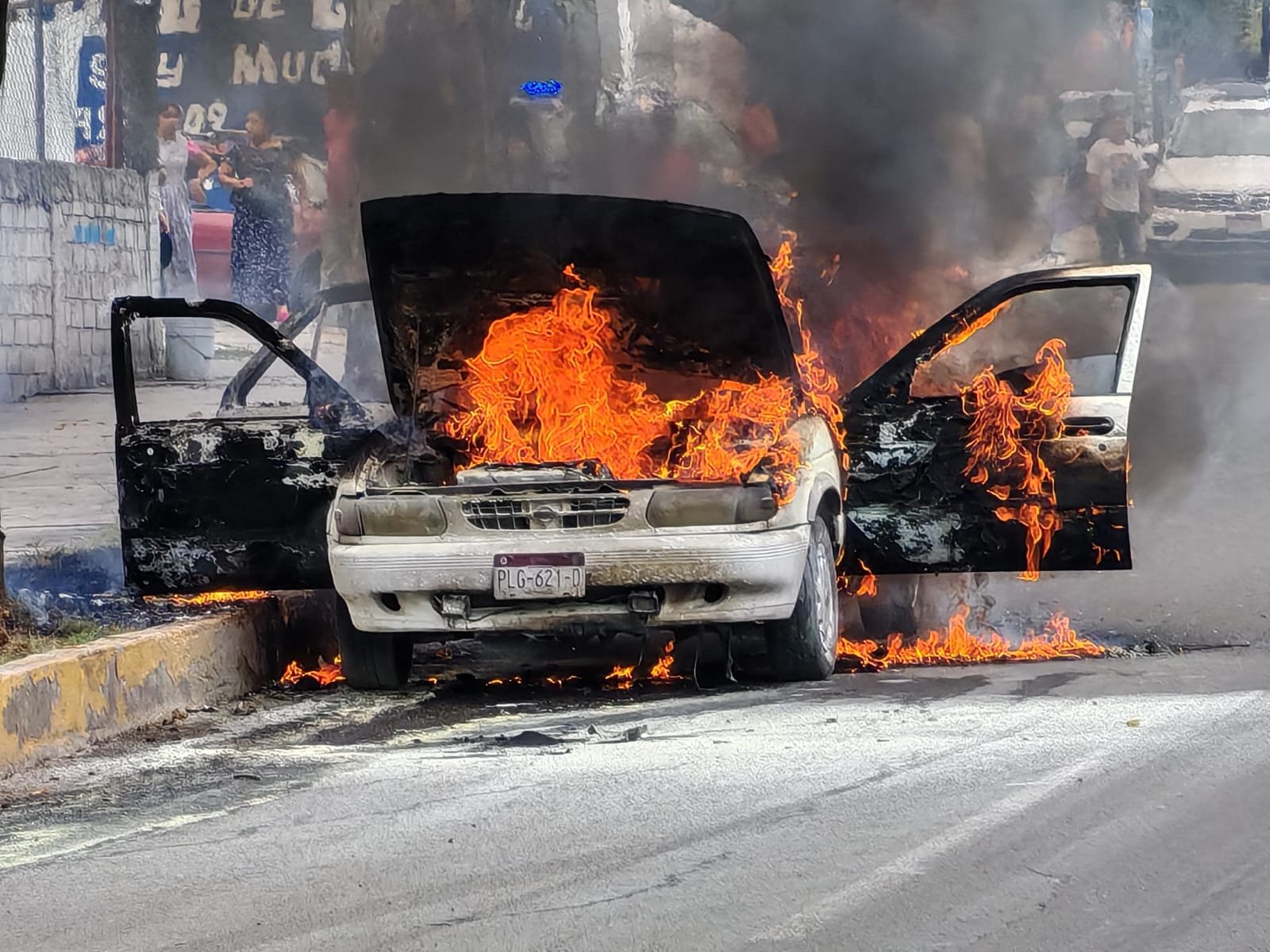 Se apreció que el coche afectado es un Nissan Tsuru, el cual terminó prácticamente calcinado. Al final, unos oficiales municipales se encargaron de las acciones conducentes.