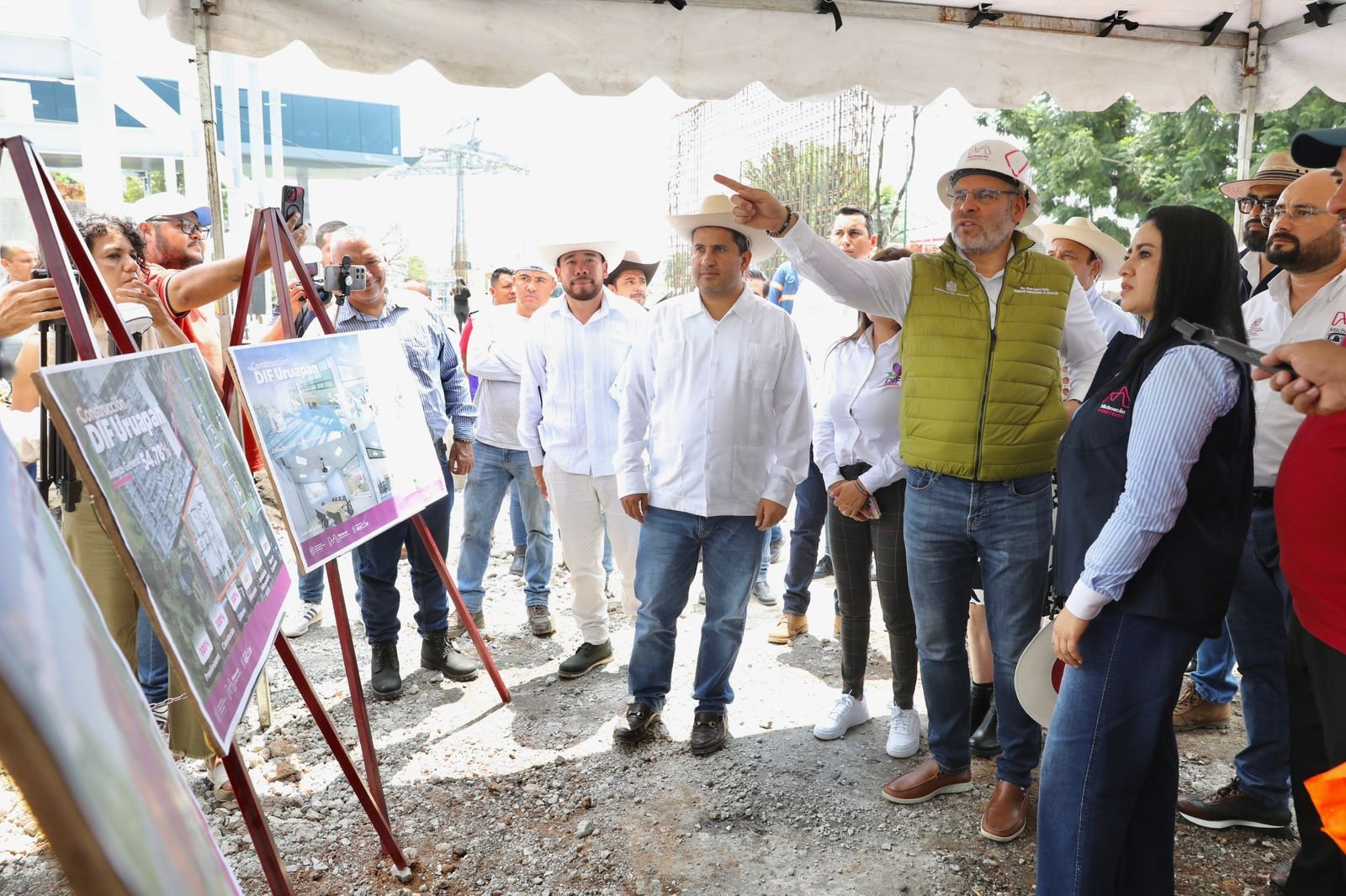 Uruapan, Mich.- El gobernador Alfredo Ramírez Bedolla supervisó la construcción del nuevo edificio del DIF municipal de Uruapan, cual registra un avance general del 55 por ciento; infraestructura que forma parte de las 22 obras complementarias del teleférico para brindar una atención integral a miles de familias de este municipio.