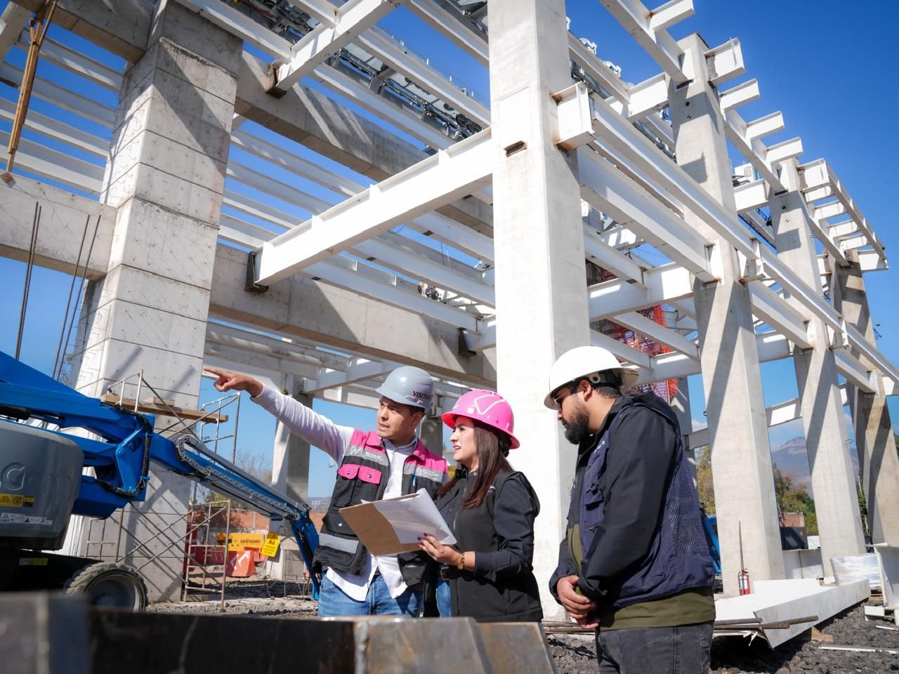 Morelia, Mich.- La secretaria de Desarrollo Urbano y Movilidad, Gladyz Butanda Macías, supervisa la construcción del garaje donde se almacenarán las cabinas del teleférico de Morelia, en la Estación 1 del Estadio Morelos.