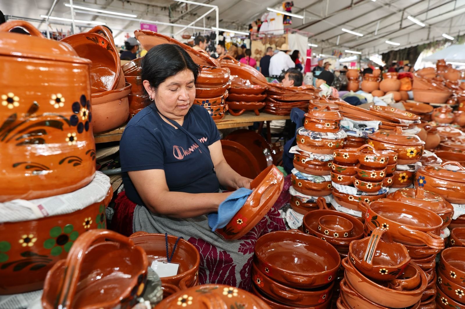 Para Teresa Silva Tzintzun, alfarera de la localidad de Zipiajo, en el municipio Coeneo, su presencia en el Tianguis Artesanal tiene un significado especial este año, ya que menciona extrañan a Nana Elvia, artesana de su comunidad que falleció el mes pasado, dejando un gran legado en alfarería y textil bordado que ahora buscan honrar siguiendo sus enseñanzas.
